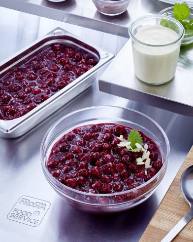Ingredients: sour cherries (60 %), water, blackcurrant juice from concentrate, sugar, modified maize starch, agave syrup, cinnamon, caramel sugar syrup (sugar, water).