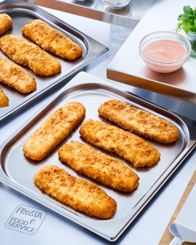 ALASKA POLLOCK FILLETS (70%), WHEAT FLOUR, rapeseed oil, water, starch (WHEAT, potato), salt, yeast, maize flour, palm fat, dextrose , SWEET WHEY POWDER, raising agents (diphosphates, sodium carbonates), thickener xanthan gum, spices (paprika, MUSTARD SEED, turmeric).