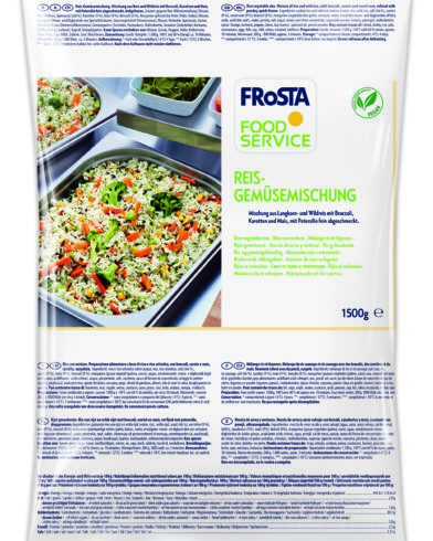 cooked rice and wild rice mixture (water, rice, wild rice, salt), (66 %), carrots (9 %), sweet corn (9 %), broccoli (8 %), margarine (vegetable fats (palm, coconut), water, emulsifier mono- and diglycerides of fatty acids, acid citric acid), water, parsley, salt, sugar, lemon juice from concentrate, vegetable powder (onions, parsnips), maltodextrin, spices (lovage, turmeric, pepper, cloves, bay leaves), rapeseed oil, porcini powder.