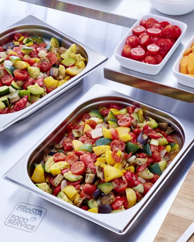 cherry tomatoes, yellow and green courgettes, grilled red peppers, onions, yellow peppers, grilled aubergines, water, extra virgin olive oil, salt, sugar, herbs (thyme, rosemary), pepper.