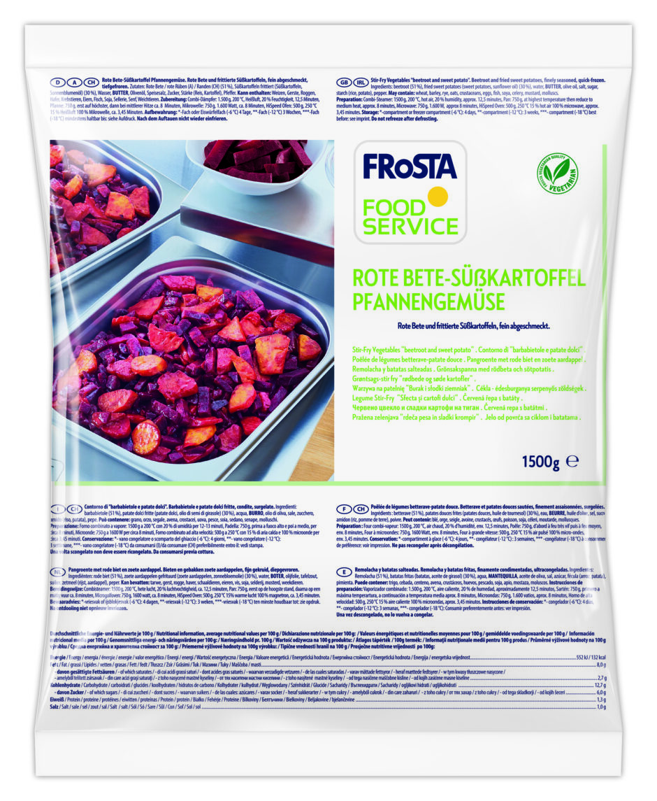 beetroot (51 %), fried sweet potatoes (sweet potatoes, sunflower oil) (30 %), water, BUTTER, olive oil, salt, sugar, starch (rice, potato), pepper.