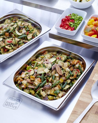 courgettes, onions, bell peppers, mushrooms, cut green beans, grilled aubergines, rapeseed oil, black olives (olives, salt), herbs (basil, oregano, parsley), salt, tomato puree, sugar, garlic, potatoe starch , spices (pepper, lovage, turmeric, cloves, laurel), maltodextrin, vegetable powder (parsnips, carrots), porcini powder.