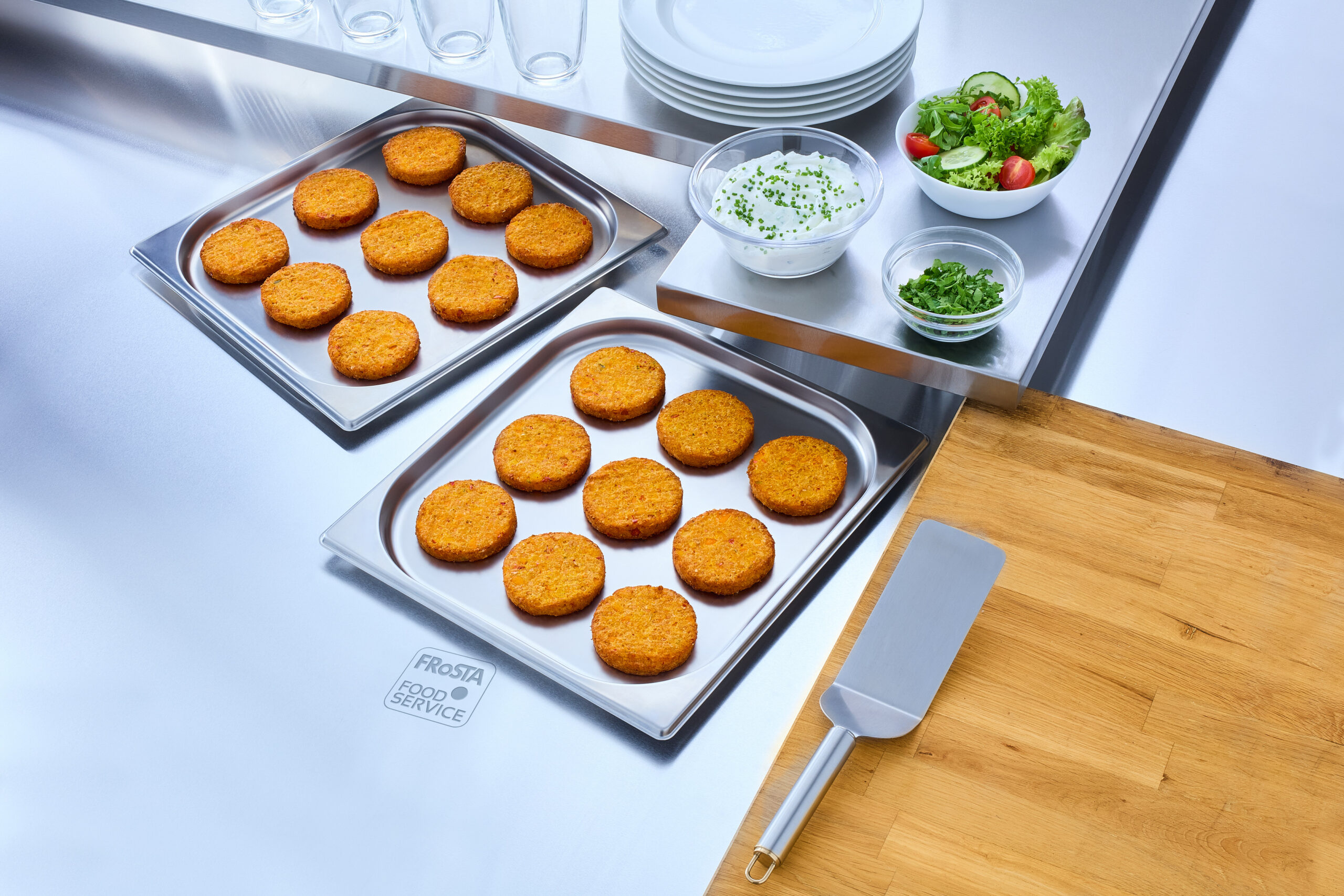 Vegan vegetable patty in burger form with a harmonious blend of pumpkin, carrots and cooked red lentils combined with oat flakes, refined with orange juice and selected spices. The juicy veggie patty has a firm consistency and delights with a slightly sweet and sour taste. It is pre-fried and quickfrozen.